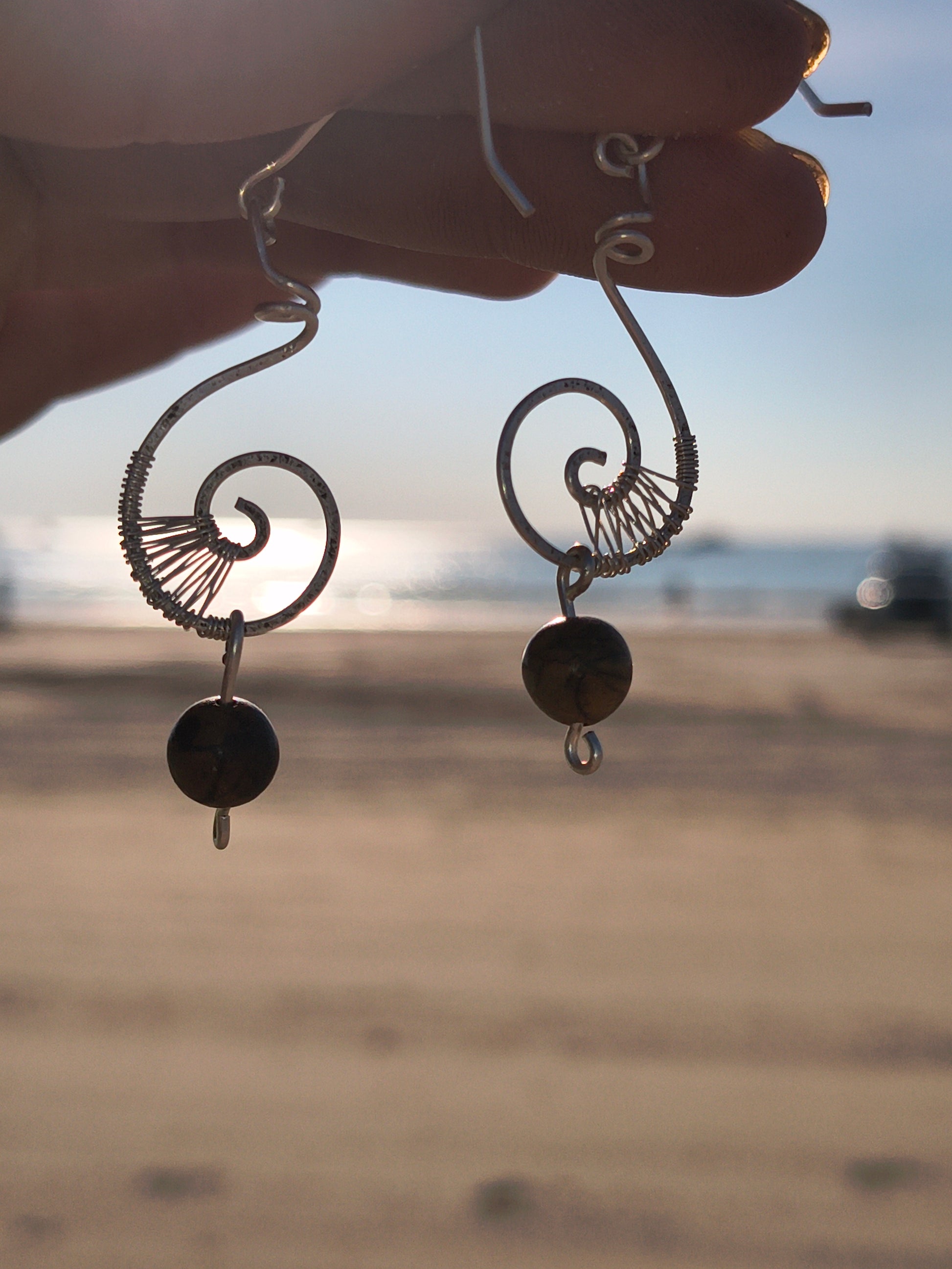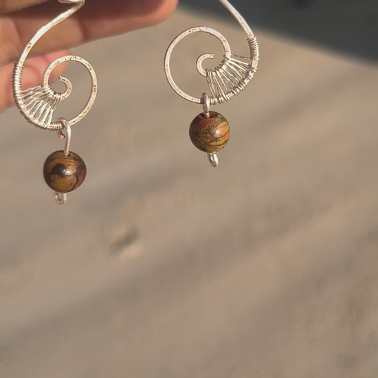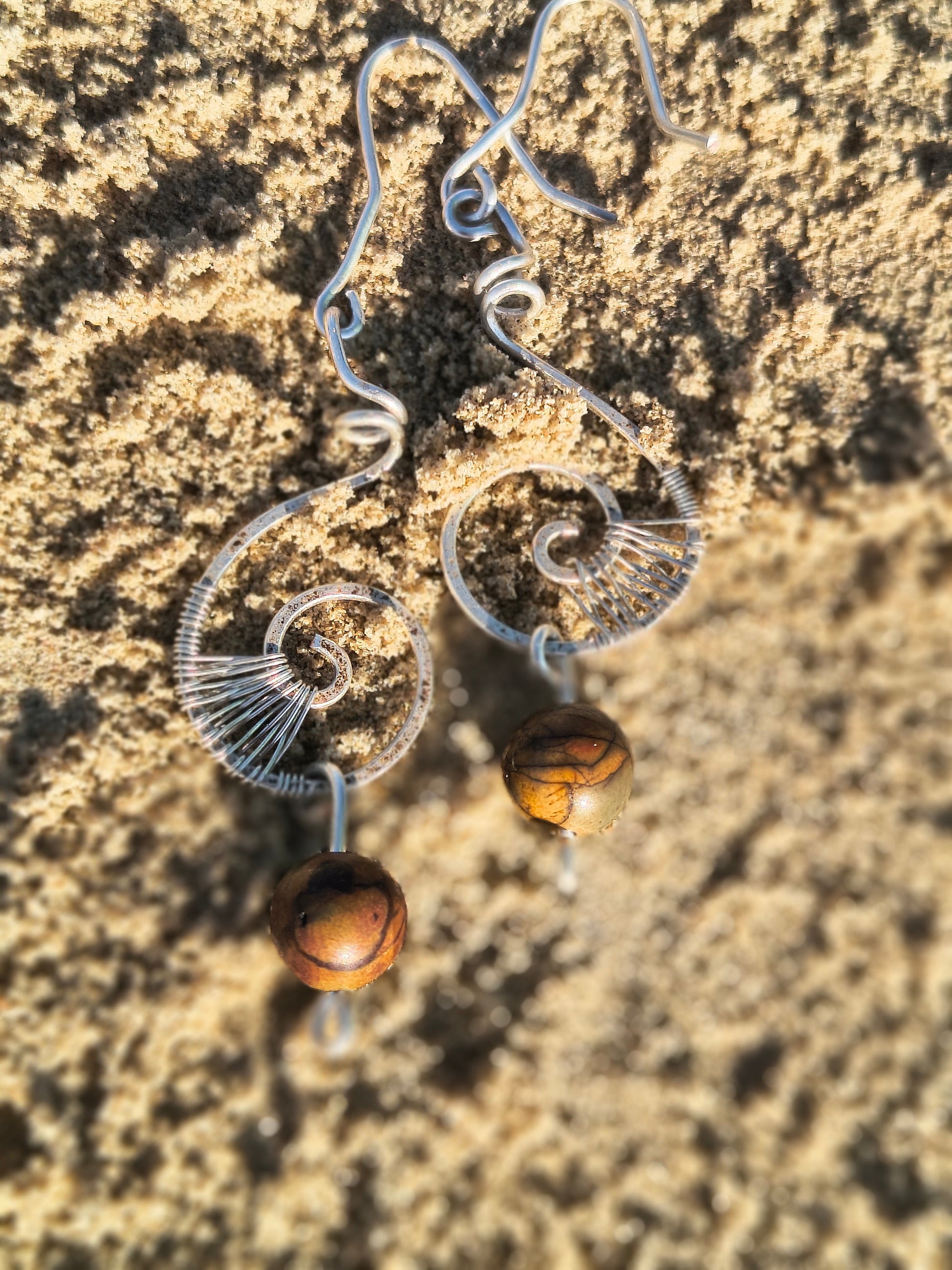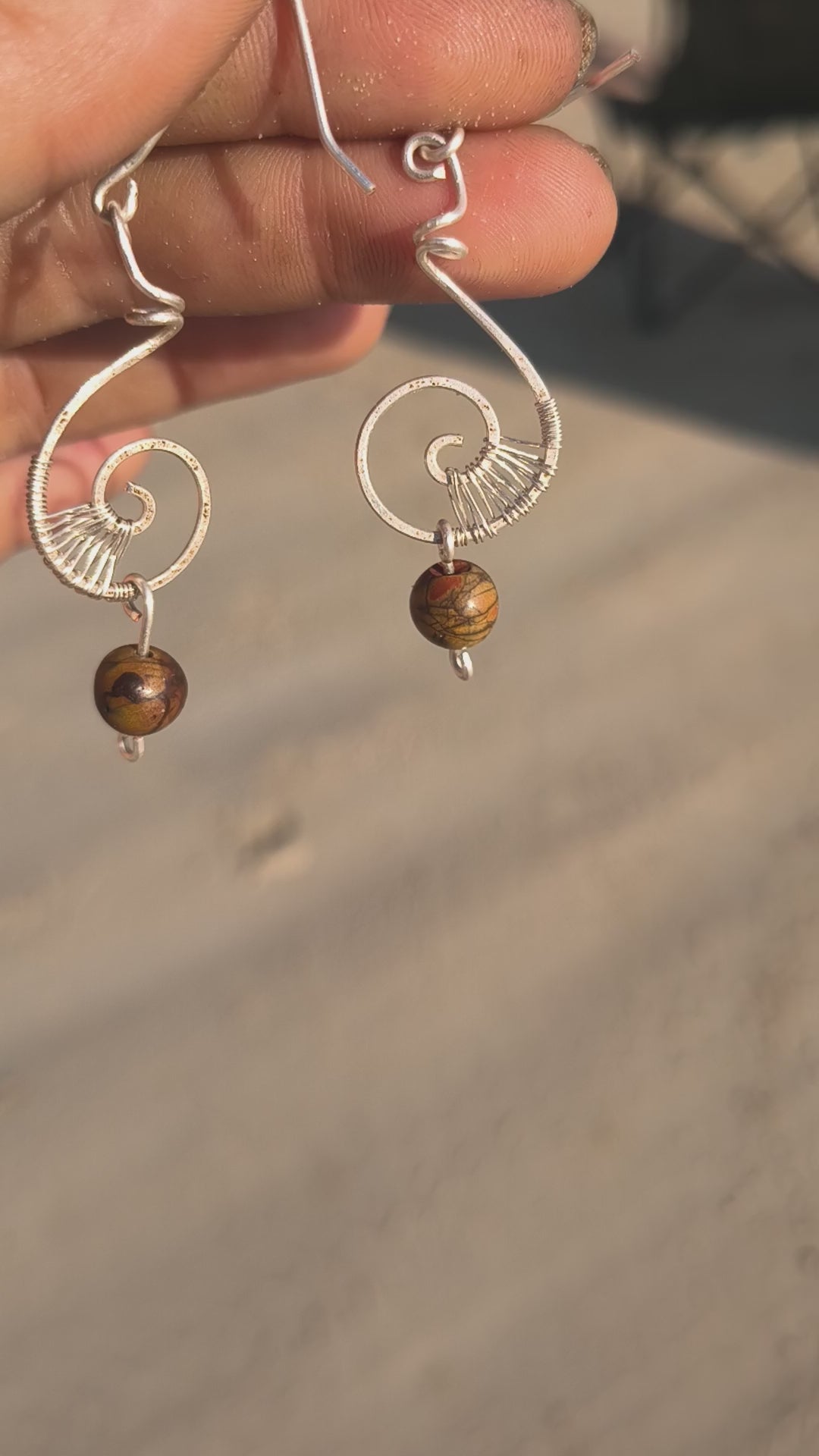 Spiral Mantra Earrings – Mala Beads & Silver-Filled Wire